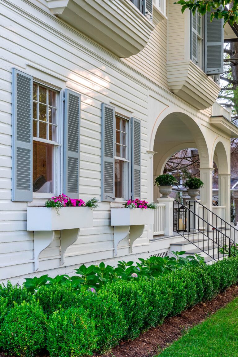 At the front, improvements include terraced plantings along the slope leading up to the house. New dry-laid brick for the stairs and entry path are in keeping with the era of the house and a pair of existing birch trees were retained to frame the restored 1890s façade. The classic white, picket fencing was moved up to embrace the house and provide a clear enclosure for the rear yard, which underwent a major transformation.