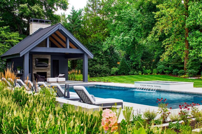 This generous parcel is in an established neighborhood in McLean, VA. The land surrounding the house did not serve the owners’ needs or desires, but they lived in the house for a decade before transforming the entire landscape in lieu of buying a vacation property. With Richardson & Associates, they embarked on creating a resort for themselves, their kids, and their friends, right there at home.